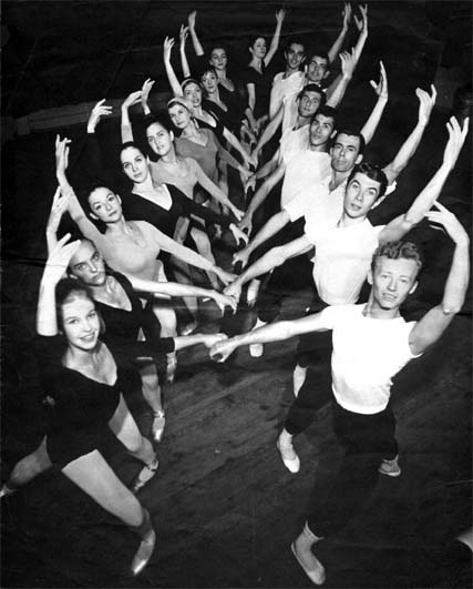 At left, Wiseman is pictured in the front right in a photo of dancers with Les Grands Ballet Canadiens, where he was a soloist from 1963 to 1964.